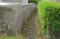 You will notice the photographs (May 2009) show a badly washed out footpath together with undermining of the wall foundations. This was caused by severe rainwater runoff from Battock Terrace. The pavement, drainage and kerb at the upper end of the lane have been reworked in late 2008 to prevent this happening again. It is hoped that funds will be made available to Torphins Community Council from Aberdeenshire Council, to repair the pathway in summer 2009.
