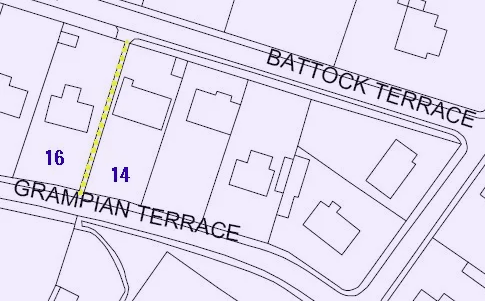 Coopers lane, running up between no’s 14 and no’s 16 Grampian Terrace to Battock terrace. This lane was named from its use in the late 19th and early 20th Century by the local baker, Mr. Cooper, to take his cart horse up and down to the field, which at that time lay at the rear of the houses on the site.